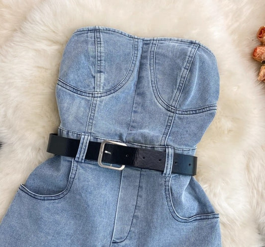 Jeans-Latzshorts mit Gürtel"